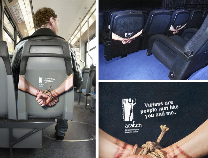 ACAT campaign against torture: Back of seats