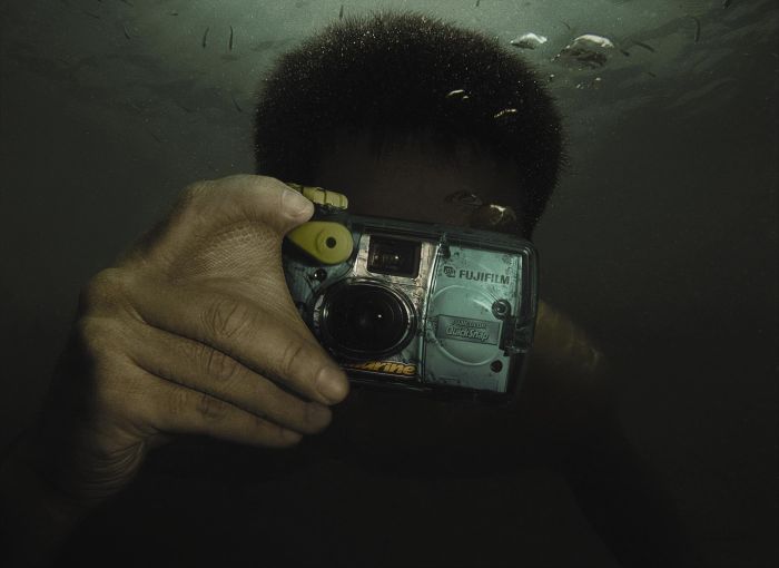 Fuji Underwater Camera: Webbed fingers