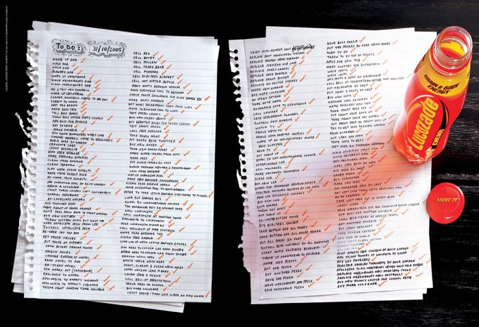 Lucozade: To do list