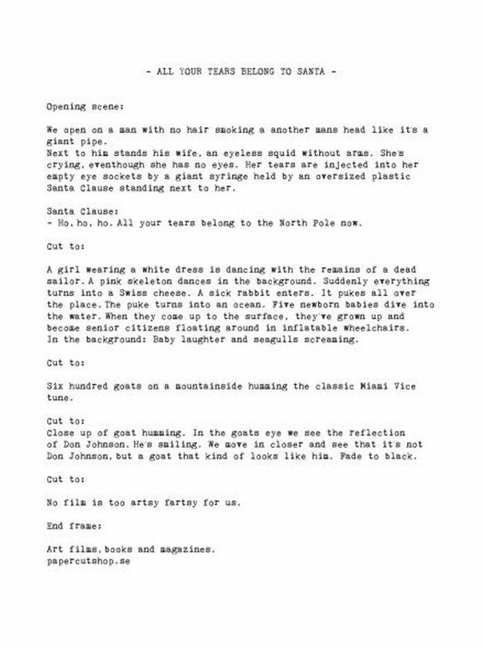 Papercut avantgarde film shop: Script
