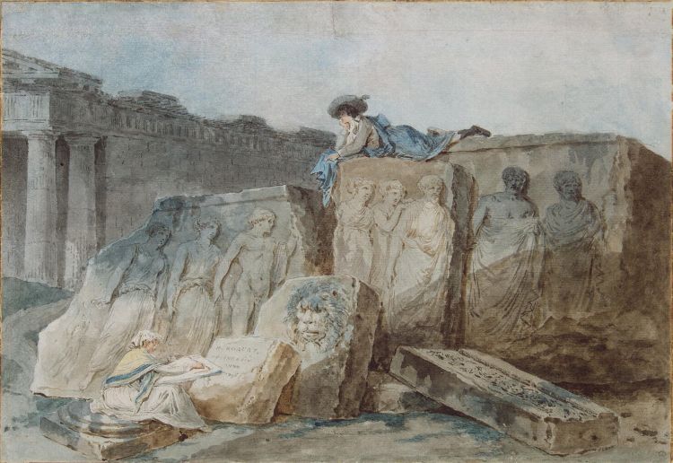 An Artist amongst the Ancient Ruins by Robert Hubert