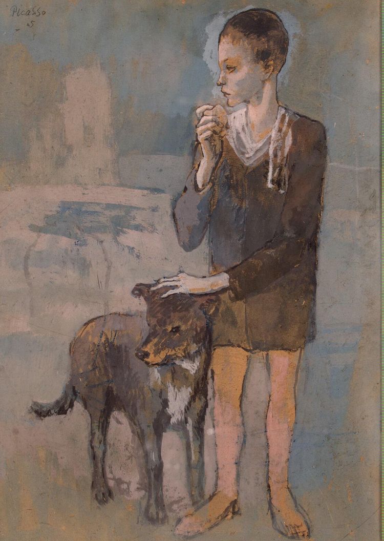 Boy with a Dog. Reverse Study of Two Figures and a Male Head in Profile by Picasso Pablo