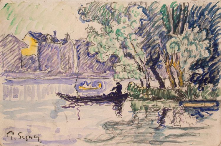 Fisherman in a Boat Near a Bank of the Seine by Signac Paul