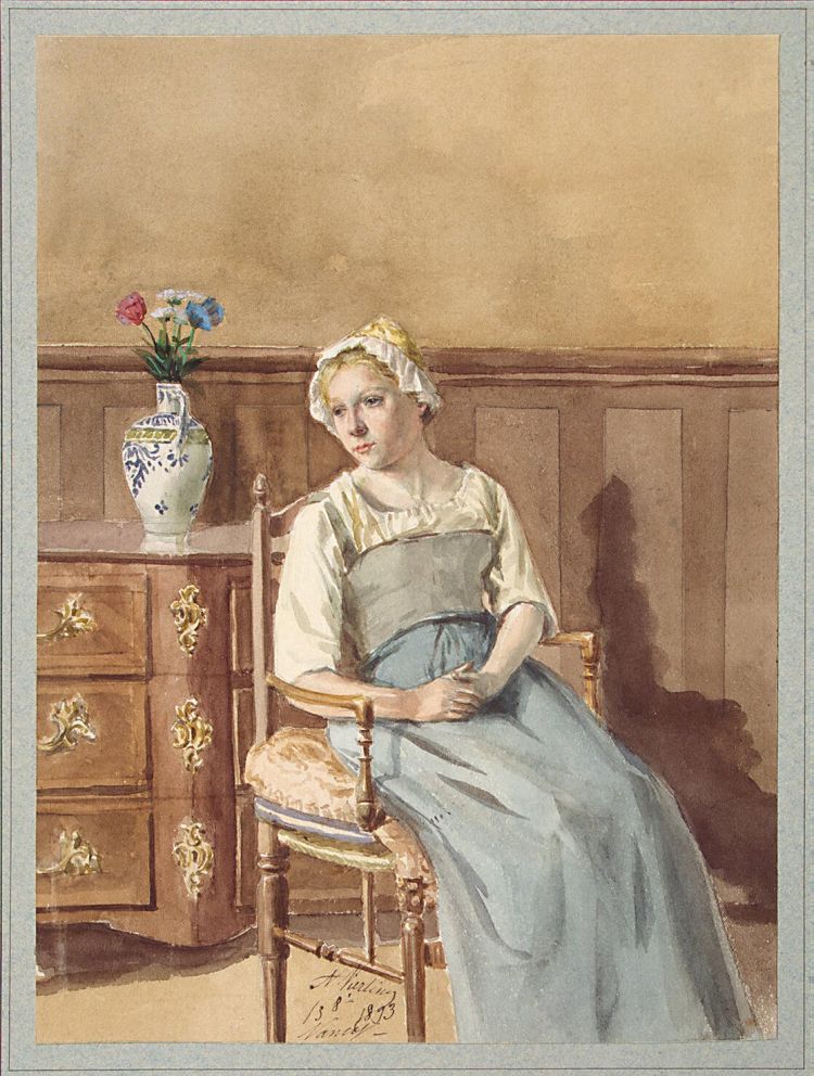 Interior with a Woman in a National Costume Seated in an Armchair by Vierling A.