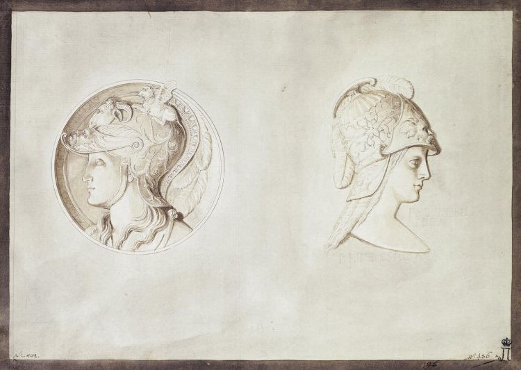 Marbre Bas-Relief with the Depictions of Zenobia and Penthesilea in Profile by Houel Jean-Pierre-Laurent