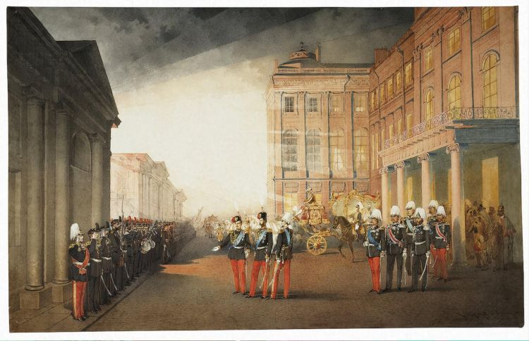 Parade in front of the Anichkov Palace on 26 February 1870 by Zichy Mihaly