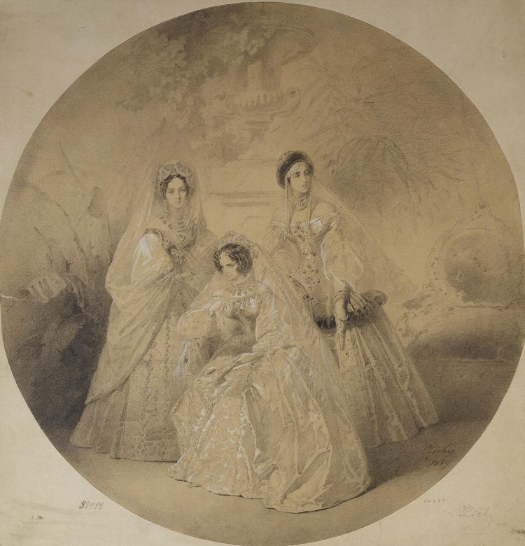 Portrait of Empress Maria Alexandrovna the Dowager Empress Alexandra Fiodorovna and Grand Duchess Alexandra Iosifovna by Zichy Mihaly