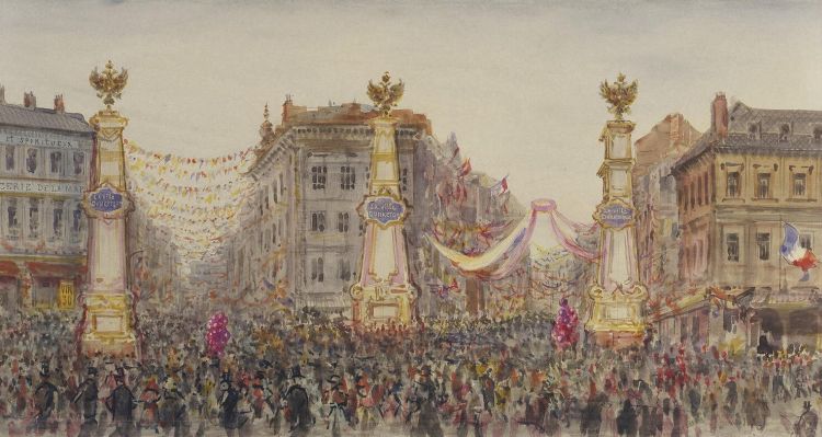 Rolled Panorama The Visit of Emperar Nicholas II to France in September 1901. Detail The Reception at Dunkirk by Pyasetsky Pavel Yakovlevich