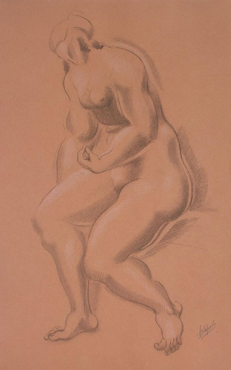 Seated Female Nude with Left Hand on Right Leg by Archipenko Alexander