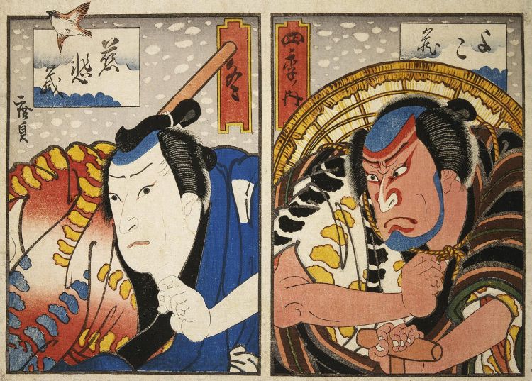 Sheet Winter. Diptych The Actors Nakamura Utaemon IV and Nakayama Nanshi III by Gosotei Hirosada