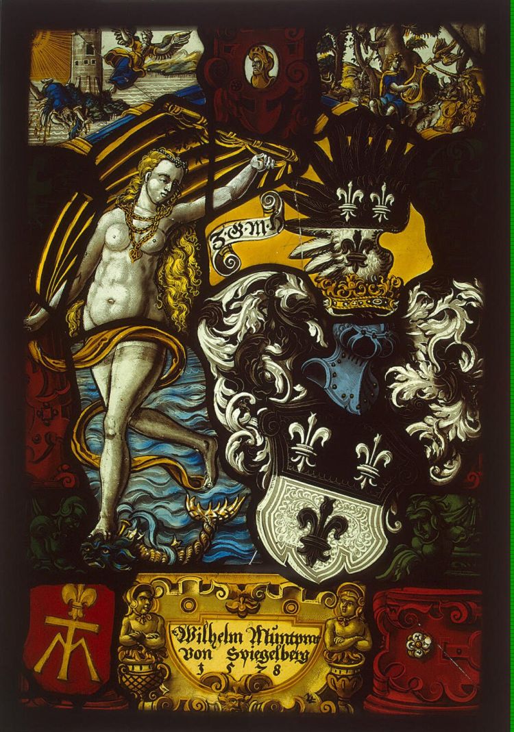 Stained Glass Panel Fortune as a Shield-Holder by Wirt von Wil Nicolaus