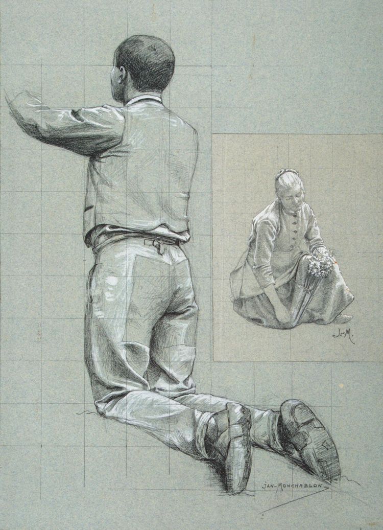 Studies of Mail and Female Figures by Monchablon Jean