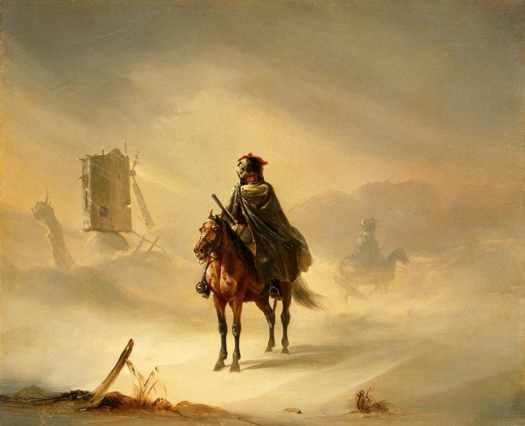 Two French Hussars on Patrol in Winter by Raffet Auguste