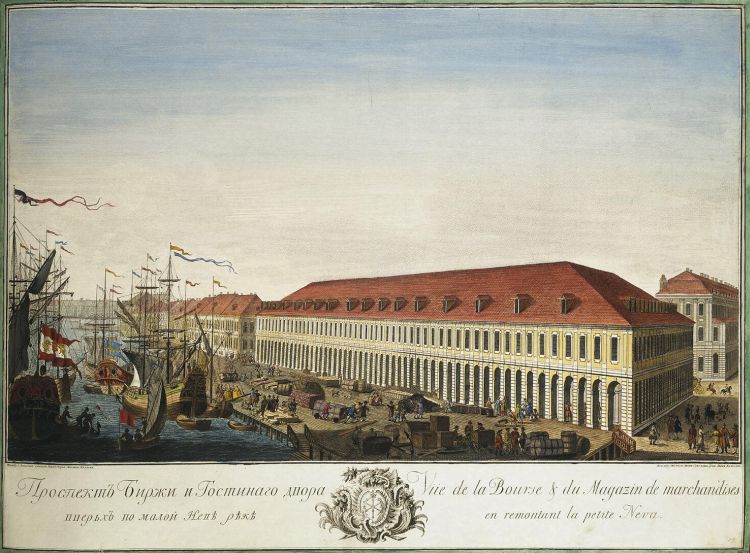 View of the Exchange and Gostiny Dvor Shopping Arcade Upstream the Malaya Neva River by Yelyakov I.P.