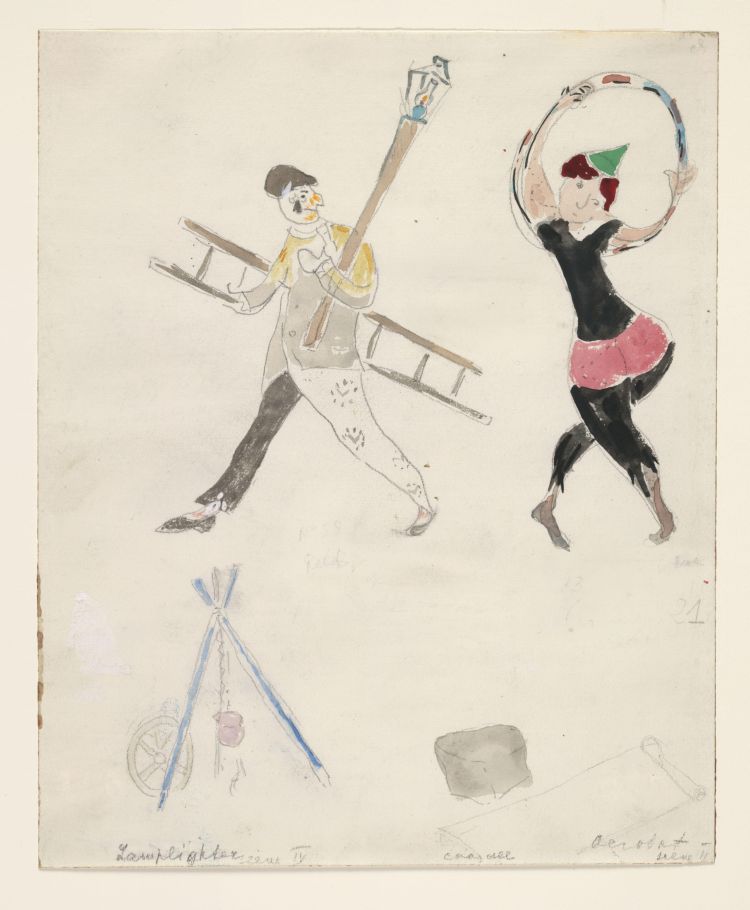 A Lamplighter and an Acrobat, costume design for Aleko by Marc Chagall