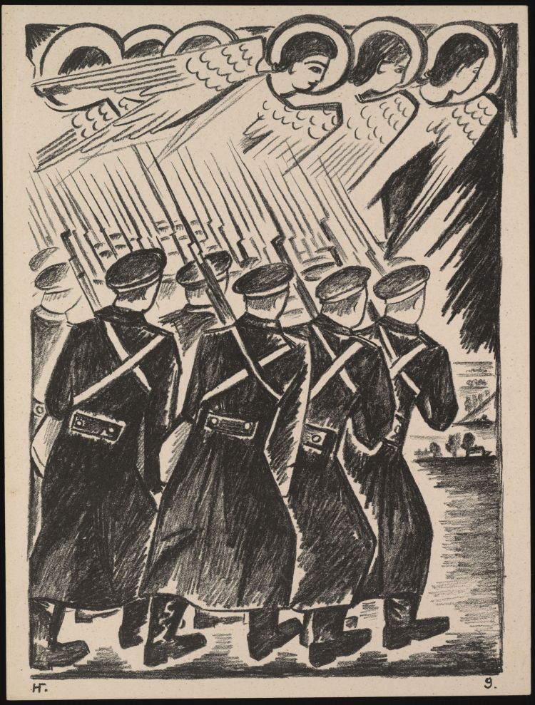 Khristolyubivoe voinstvo from Misticheskie obrazy voiny. 14 litografii by Natalia Goncharova