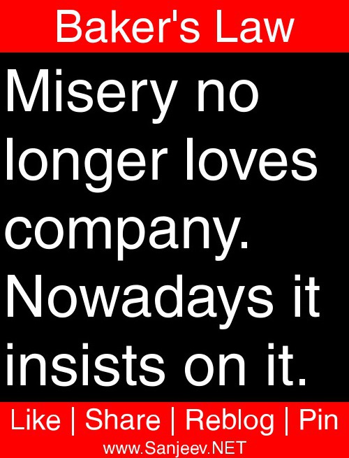Misery no longer loves company. Nowadays it insists on it.
