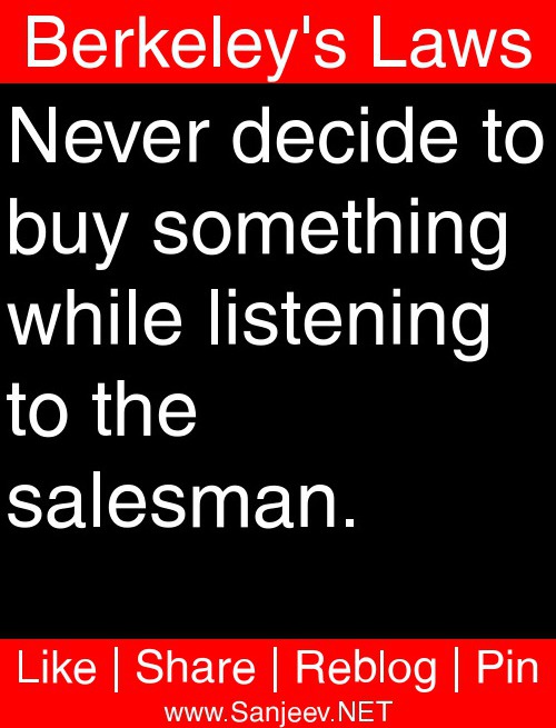 Never decide to buy something while listening to the salesman.
