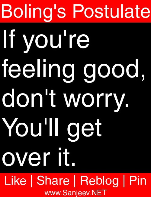 If you're feeling good, don't worry. You'll get over it.