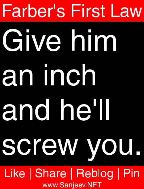Give him an inch and he'll screw you.