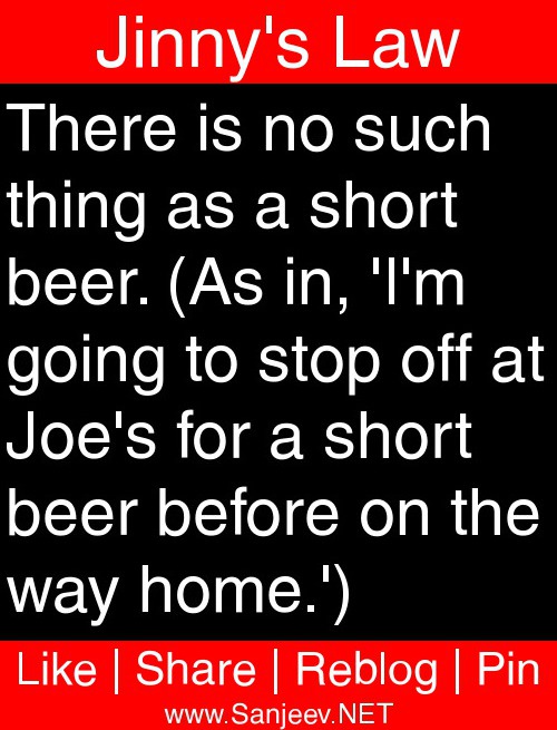 There is no such thing as a short beer. (As in, "I'm going to stop off at Joe's for a short beer before on the way home.")