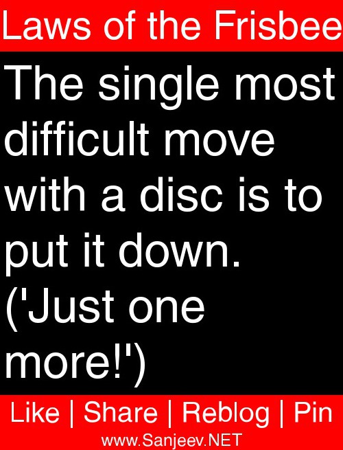 The single most difficult move with a disc is to put it down. ("Just one more!")