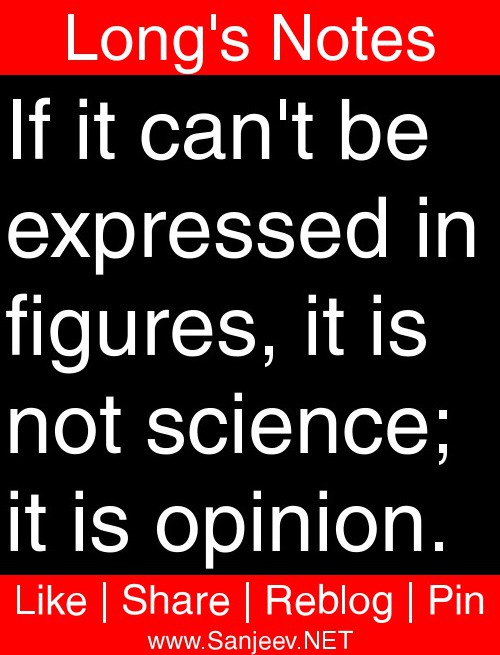 If it can't be expressed in figures, it is not science; it is opinion.