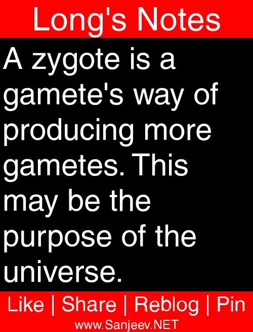 A zygote is a gamete's way of producing more gametes. This may be the purpose of the universe.
