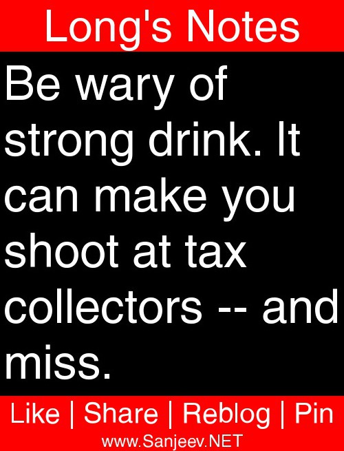 Be wary of strong drink. It can make you shoot at tax collectors -- and miss.
