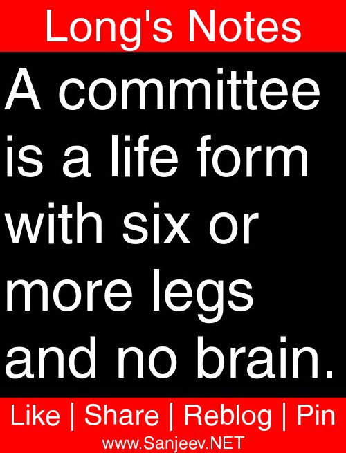 A committee is a life form with six or more legs and no brain.