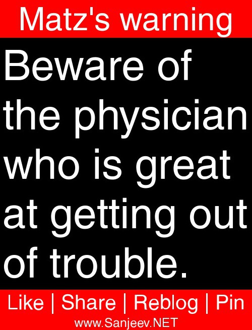 Beware of the physician who is great at getting out of trouble.