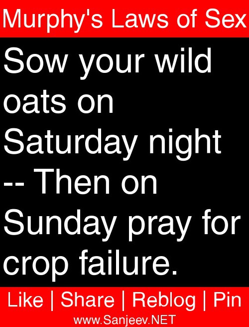 Sow your wild oats on Saturday night -- Then on Sunday pray for crop failure.