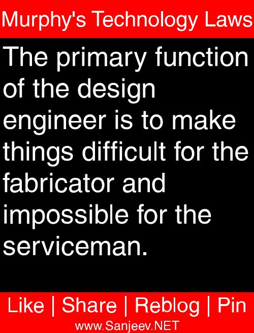The primary function of the design engineer is to make things difficult for the fabricator and impossible for the serviceman.