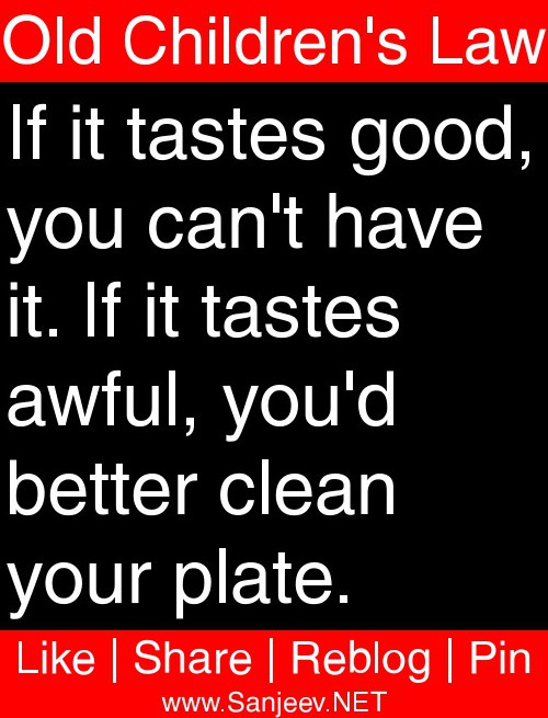 If it tastes good, you can't have it. If it tastes awful, you'd better clean your plate.