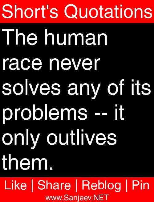 The human race never solves any of its problems -- it only outlives them.