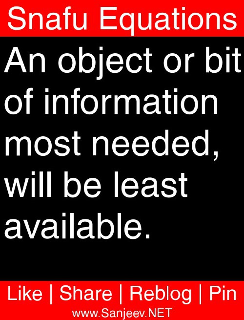 An object or bit of information most needed, will be least available.