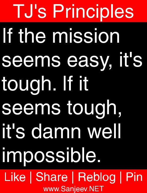If the mission seems easy, it's tough. If it seems tough, it's damn well impossible.