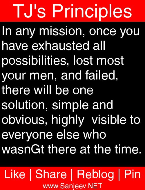 In any mission, once you have exhausted all possibilities, lost most your men, and failed, there will be one solution, simple and obvious, highly visible to everyone else who wasnΓt there at the time.
