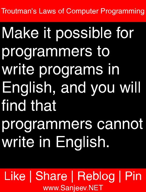 Make it possible for programmers to write programs in English, and you will find that programmers cannot write in English.