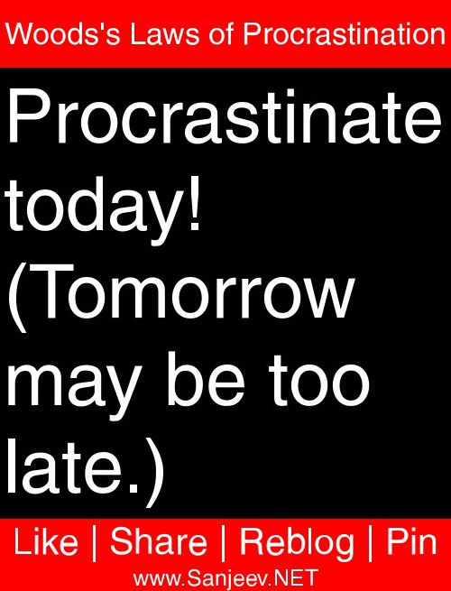 Procrastinate today! (Tomorrow may be too late.)